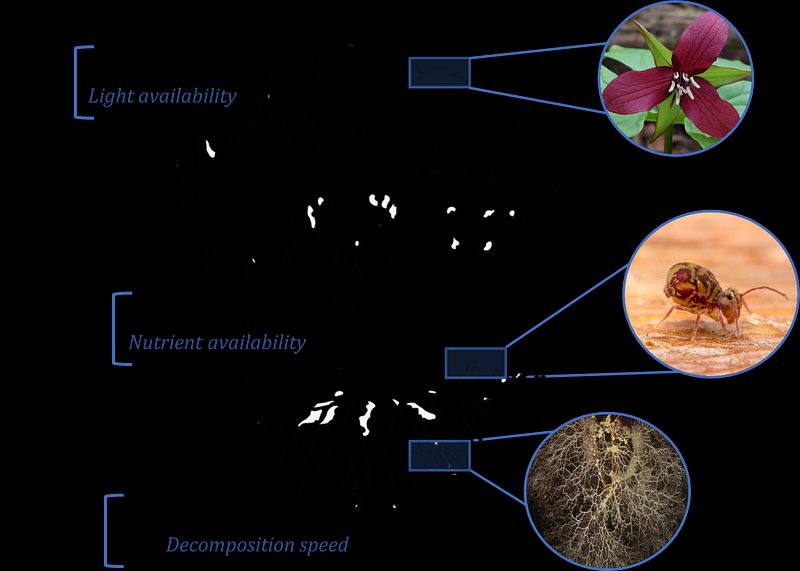 Ash have several unique traits compared to other trees in northern mixed hardwood forests. They (1) leaf-out later, (2) have increased nutrient availability in their leaf litter content, and (3) are associated with the less common mycorrhizal type. I am investigating how these traits impact the sub-canopy communities of plants and invertebrates below ash and other trees to better understand the potential negative effects of ash extirpation on other organisms.